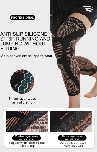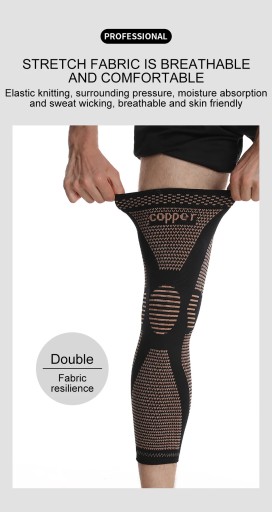 1Pcs Long Copper Nylon Kneepads Sports Fitness Sided Bullet Compression Knee Guard Arthritis Joint Pain Relief Knee Sleeve