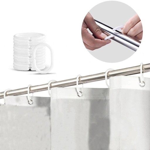 1 szt zasłona prysznicowa i 24 szt biały haczyki