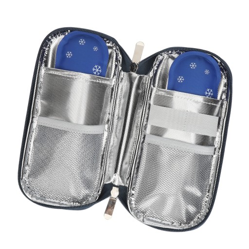 Cecha: 1. Torba termoizolacyjna na insulinę: Dzięki tej przenośnej i lekkiej torbie termoizolacyjnej insulina będzie chłodna i bezpieczna podczas podróży. Potrafi utrzymać niską temperaturę insuliny przez 6–8 godzin, zapewniając utrzymanie jej odpowiedniej temperatury umożliwiającej efektywne wykorzystanie.