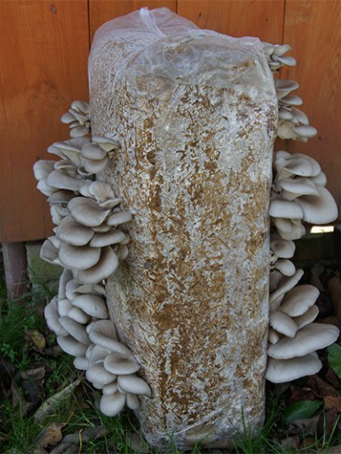 Specjalnie przygotowane podłoże przerośnięte grzybnią Boczniaka Ostrygowatego w postaci gotowego balotu do założenia własnej amatorskiej hodowli.