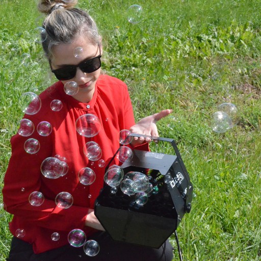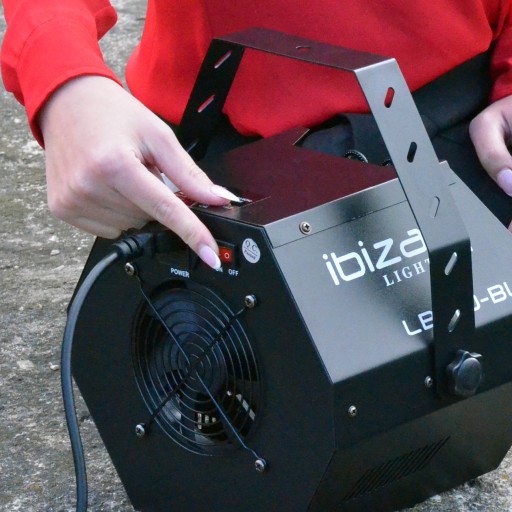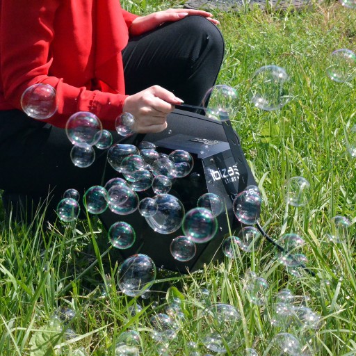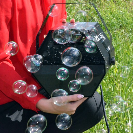 Maszyna generuje dużą ilość dużych bąbelków na minutę, które wypełniają przestrzeń, tworząc niesamowitą atmosferę.
