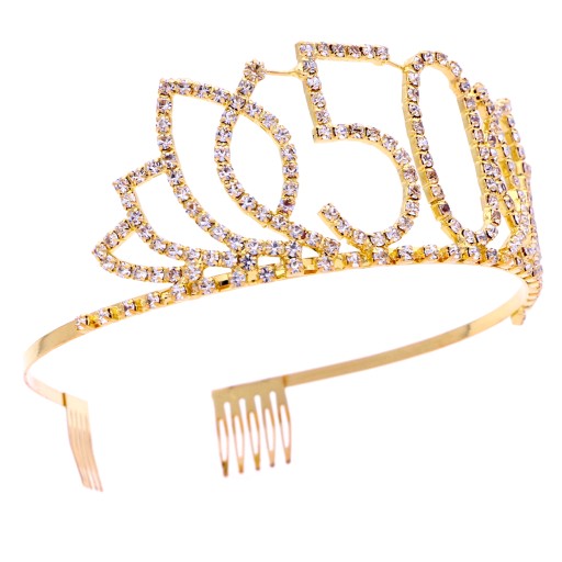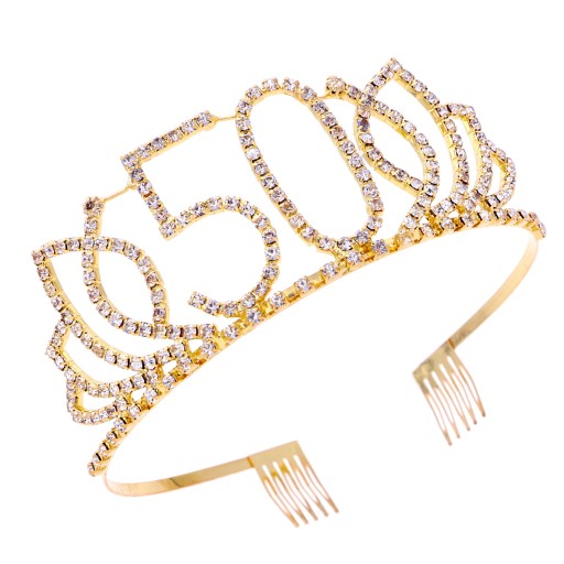 ✅1 x Tiara na 50. urodziny dziewczynki Kryształowy stras Urodzinowa tiara z koroną Opaska na głowę z klipsem z grzebykami do włosów na 50. urodziny Dekoracje na bal (złoto)
