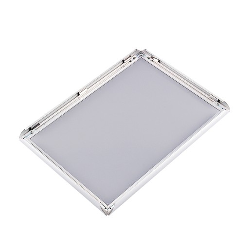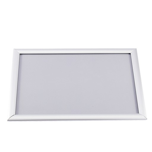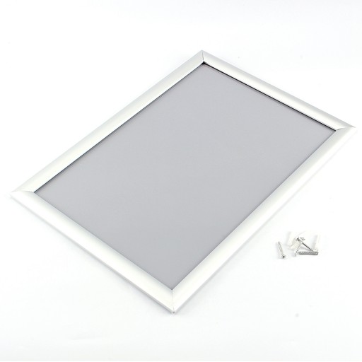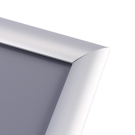 Ramy plakatowe są zaprojektowane tak, aby otwierać się od przodu, co ułatwia wymianę plakatu. Pojedynczy plakat umieszcza się za ochronną folią z tworzywa sztucznego i czterema sprężynującymi zaciskami profilowymi, które utrzymują plakat na miejscu. Aluminiowa krawędź ukośna, szeroka na 25 mm, plastikowa tablica o grubości 1,25 mm i przeciwodblaskowa osłona z PCV. Rama może być używana jako pozioma lub pionowa. 4 otwory na śruby umieszczone pod profilami zapewniają bezpieczny montaż. Śruby i kołki rozporowe znajdują się w zestawie.