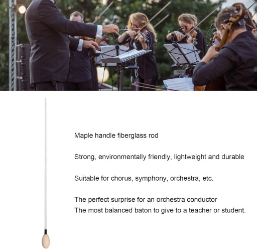 DLA DYRYGENTÓW Idealna niespodzianka dla dyrygentów orkiestry oferująca im dobrze wyważoną pałeczkę dyrygencką. Stanowi także wymowną niespodziankę dla nauczycieli muzyki lub uczniów którzy aspirują do zawodu dyrygenta zapewniając im narzędzie zarówno praktyczne jak i znaczące symbolicznie. ZWIĘKSZ WYDAJNOŚĆ Ta lekka pałka dyrygentska służy jako cenny pomocnik dla dyrygentów pomagając poprawić występy na koncertach muzycznych. Zapewnia dokładny i płynny ruch umożliwiając dyrygentom skuteczną komunikację z muzykami i wydobywanie z ich występów tego co najlepsze. NIEZBĘDNE AKCESORIA DLA DYRYGENTÓW MUZYCZNYCH Pałeczka dyrygencka jest niezbędnym dodatkiem dla dyrygentów muzycznych. Niezależnie od tego czy prowadzisz chór orkiestrę symfoniczną czy jakikolwiek inny zespół jest to narzędzie niezbędne które pomaga dyrygentom skutecznie kierować i kształtować muzykę. WSZECHSTRONNE ZASTOSOWANIA Nasza pałka dyrygenta jest wszechstronna i można ją dostosować do różnych kontekstów muzycznych w tym występów chóralnych orkiestr symfonicznych i innych zespołów orkiestrowych. Odpowiada potrzebom różnych gatunków i scenerii muzycznych co czyni go niezawodnym wyborem dla każdego dyrygenta. UCHWYT Klonowy Z Trzonkiem Z WŁÓKNA SZKLANEGO Nasza pałka dyrygencka posiada solidny i lekki trzonek z włókna szklanego z rękojeścią z drewna klonowego. Ta kombinacja zapewnia trwałość przyjazność dla środowiska i przenośność zapewniając wygodne i długotrwałe doświadczenie dyrygowania.