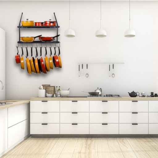 2. Ten stojak na garnki będzie również wspaniałym dodatkiem do kuchni. Wyświetla wszystkie Twoje ulubione przybory kuchenne. Jej prosty i atrakcyjny design z pewnością sprawi, że kuchnia stanie się ciepłym i wygodnym miejscem.