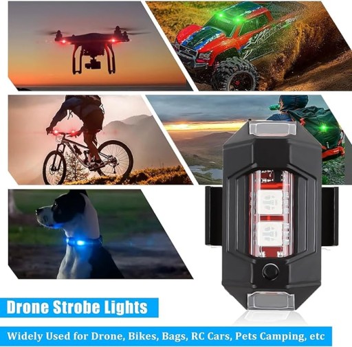 Mini światło stroboskopowe zostało zaprojektowane również jako dodatkowe światło dla drona w nocy. Widoczny w odległości 4km, 360 ° widoczność z góry dla pilotów lotniczych, które mogą dokładnie zlokalizować drona i zapobiec wypadkom w powietrzu. Lampa jest bardzo lekka -nie spowoduje dodatkowego obciążenia dla drona.