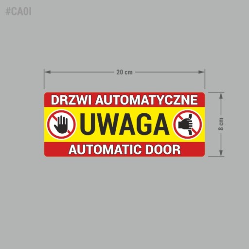 Naklejka "Uwaga Drzwi Automatyczne" drukowana i wycinana ploterowo z wysokiej jakości folii firmy ORACAL.
