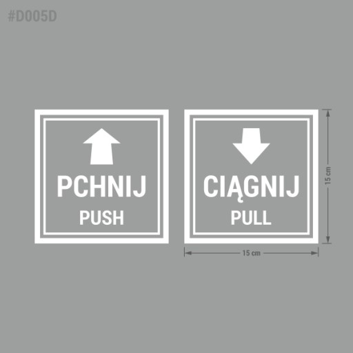 Przedmiotem aukcji jest komplet naklejek (1 naklejka “Pchnij” i 1 naklejka “Ciągnij”) wycinanych ploterowo na zamówienie z wysokiej jakości folii firmy ORACAL.