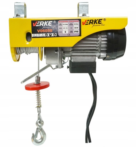Profesjonalna wyciągarka budowlana linowa Verke Premium Line. Wyciągarka elektryczna jest urządzeniem transportującym ładunki w płaszczyźnie pionowej. Powszechnie wykorzystywana do budowy i remontu domów oraz do pracy w serwisach mechanicznych. Do napędu służy silnik elektryczny zasilany z sieci 230 V. Elementem roboczym jest mocna lina wykonana z drutu stalowego. Urządzenie posiada konsolę sterowniczą umieszczoną na długim przewodzie elektrycznym oraz automatyczny wyłącznik zwijania. Mocny silnik umożliwia szybkie dźwiganie przedmiotów bez nadmiernego wysiłku ze strony obsługującego. Mocny hak łatwo podczepić do ładunku, posiada on zatrzask zabezpieczający. Niezastąpiona przy wciąganiu ciężarów na duże wysokości z zachowaniem maksymalnego bezpieczeństwa.