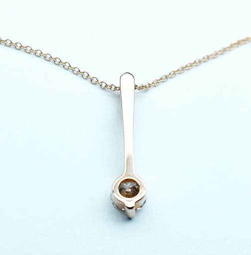 Wymiary brylantu to 5,04 x 4,97 x 2,94 mm, długość wisiorka 23,0 mm, długość łańcuszka 45 cm, a masa wyrobu łącznie wynosi 2,53 g.