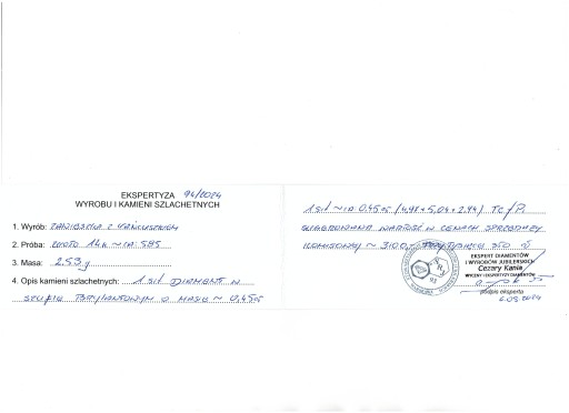 (G.671) Wisiorek posiada polski certyfikat/ekspertyzę wyrobu z wyceną w cenach komisowych w wysokości 3100 zł