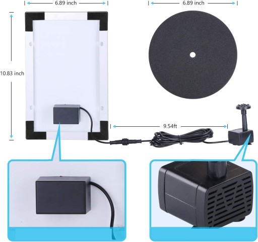 【Panel słoneczny 5 W】🌊 Ta solarna pompa wodna jest zaktualizowana do wysokiej jakości ogniw słonecznych 5 W, dzięki czemu pompa wodna działa ciągle, nawet gdy światło słoneczne jest słabe