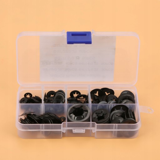Wszystkie podkładki są dobrze zapakowane i posortowane w plastikowym pudełku dla wygodnego przechowywania.