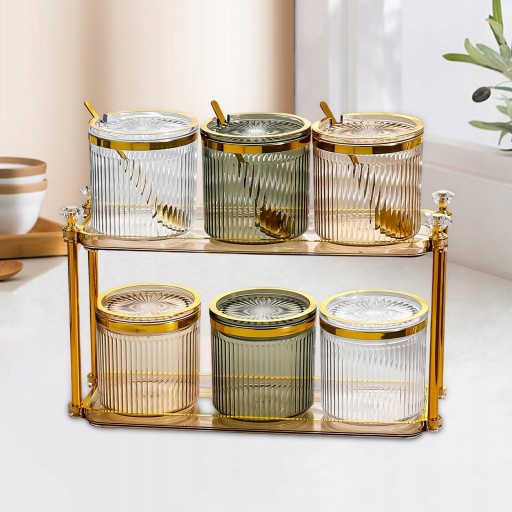 [Wystrój blatu kuchennego wiejskiego domu] lekkie, luksusowe słoiki na przyprawy, nie tylko do przechowywania żywności, ale także jako dekoracja domu, pokazująca elegancki i piękny dom.