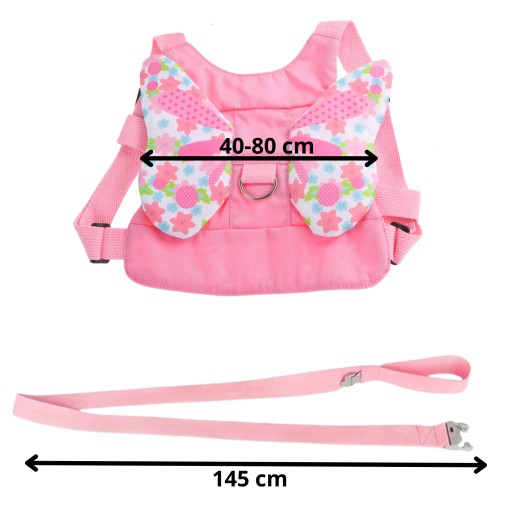 Idealne dla małych odkrywców. Te stylowe szelki z motylkowymi skrzydłami nie tylko zapewnią Twojemu dziecku bezpieczeństwo, ale również dodadzą mu wyjątkowego wyglądu. Szelki wykonane są z najwyższej jakości materiałów, które są jednocześnie trwałe i delikatne dla skóry dziecka. Kolorowe, różowe szelki ozdobione są pięknymi skrzydłami motylka, co sprawia, że każde dziecko będzie czuło się wyjątkowo i chętnie je nosiło. W zestawie znajduje się również praktyczna smycz, którą można łatwo przypiąć do szelek. To idealne rozwiązanie na spacery w miejscach o dużym natężeniu ruchu, takich jak parki, centra handlowe, gdzie łatwo jest stracić dziecko z oczu. Dodatkowym elementem zestawu jest smycz zapinana na nadgarstki na sprężynce. Ta innowacyjna smycz zapewnia jeszcze większe bezpieczeństwo, pozwalając na utrzymanie dziecka blisko siebie nawet wtedy, gdy trzymają Państwo obie ręce zajęte. Elastyczna sprężynka pozwala na swobodne poruszanie się, jednocześnie zapobiegając nagłym i niekontrolowanym oddaleniom się dziecka.