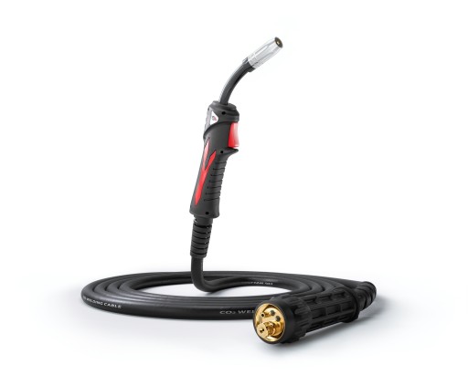 Uchwyt również posiada szybkomocujące złącze EURO ze sprężynowymi stykami i izolowanym prowadnikiem drutu, dzięki czemu jest uniwersalny i może być używany w większości półautomatów spawalniczych na rynku.