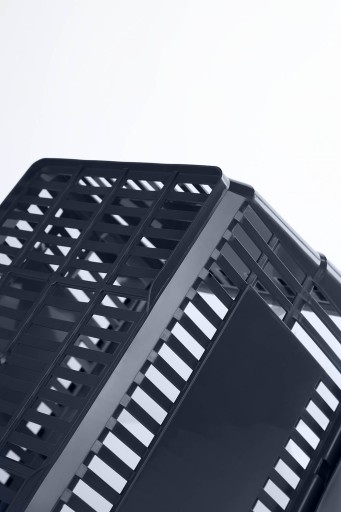 Wózek z czerwoną rączką z wyznaczonym miejscem na 2 koszyki oszczędzający miejsce podłogowe + 2 koszyki ciemne szare z dwoma rączkami. Doskonały dla klientów sklepów, mających problemy z dźwiganiem ciężkich towarów. Może być również wykorzystany jako wózek transportowy do przemieszczania mniejszych przedmiotów w miejscu pracy. Wyposażony w cztery obrotowe kółka. Maksymalne obciążenie wózka to 60 kg. Wygodny i łatwy w manewrowaniu wózek, który sprawdza się zarówno w supermarkecie jak i mniejszym sklepie. Doskonały dla klientów sklepów, mających problemy z dźwiganiem ciężkich towarów.