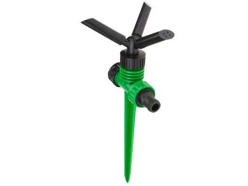 Łatwy w użyciu, instalacja zajmuje kilka sekund wystarczy wbić bolec w ziemię i podłączyć do węża. Można też podłączyć go szeregowo z innymi zraszaczami.