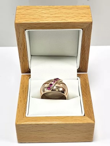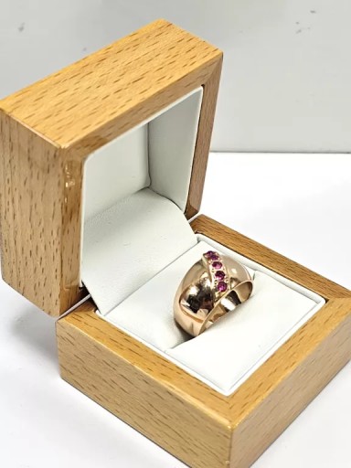 CIEKAWY ZŁOTY PIERŚĆIONEK 583 SYNT. RUBINY R22 6,28G