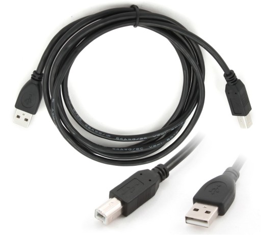 - Wysokiej jakości kabel z rdzeniem ferrytowym eliminującym zakłócenia, do łączenia komputera z drukarką, skanerem i itp.
