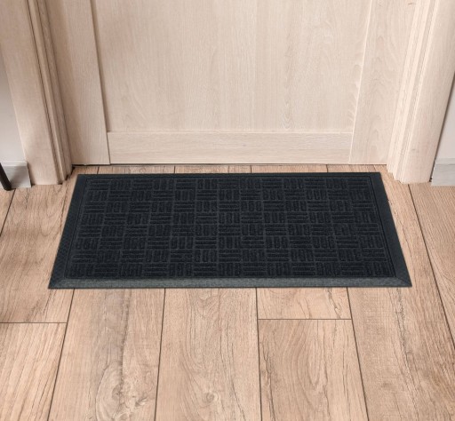 Właściwości antypoślizgowe: Gumowy spód zapobiega, przesuwaniu się wycieraczki tym samym dbając o bezpieczeństwo podczas jej użytkowania.