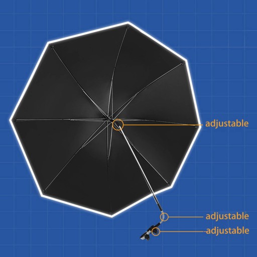 Parasol regulowany 360°: główkę parasolki i stopkę rączki można swobodnie regulować w dowolnym kierunku dzięki elastycznemu support.the . Parasol przeciwsłoneczny zapewni bezpieczne trzymanie większości dzieci itp.