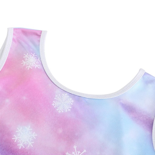Projekt: kolorowe stroje taneczne bez rękawów z nadrukiem płatka śniegu, wydrążony tył, piękny i elegancki, łatwy do zakładania i zdejmowania.