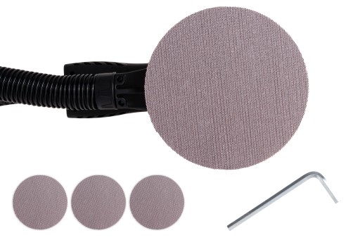 - Wyposażenie: W zestawie znajdują się 3 sztuki papieru ściernego - P80, P100, P220 oraz klucz do montażu i demontażu tarczy