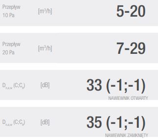 - Przepływ powietrza dla 10Pa - 5-20m3/h