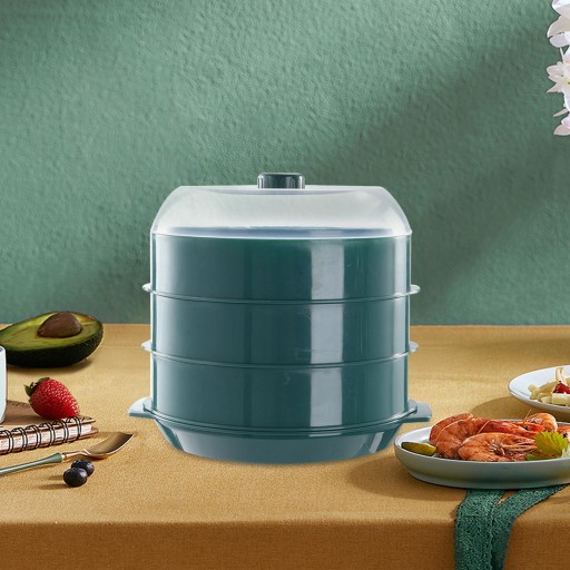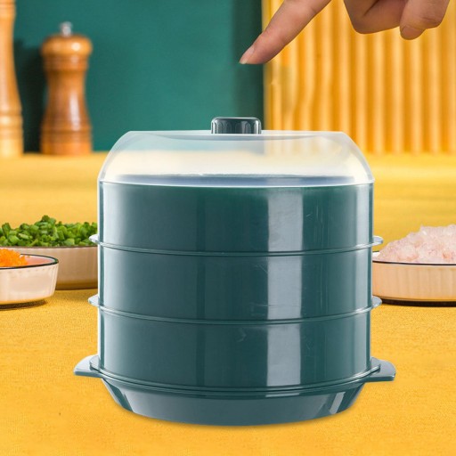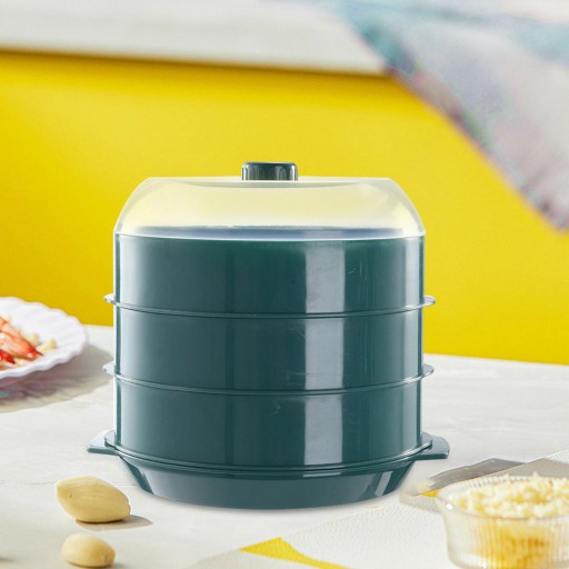 Kuchenka mikrofalowa parowar Pojemnik na żywność do układania w stos na warzywa Kuchnia Ryba Zielony trójwarstwowy