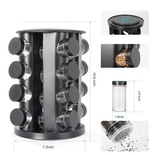 🍠Dzięki 16 przegródkom jego pojemność jest ogromna, więc możesz mieć pewność, że stojak pomieści wszystkie Twoje ulubione przyprawy.