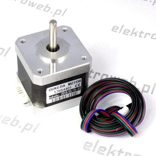Silnik krokowy NEMA17 sprzedawany w zestawie z długim przewodem o 4 żyłach służącym do podłączenia. Silnik NEMA17 HS4401 jest silnikiem bipolarny.