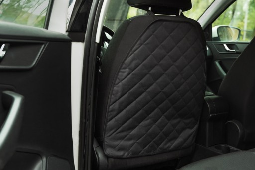 Mata zabezpiecza tył fotela samochodowego przed uszkodzeniami, przetarciami oraz zabrudzeniami. Wykonana jest z wodoodpornego, łatwego w konserwacji materiału. Dzięki uniwersalnemu rozmiarowi 50 x 57 cm pasuje do większości foteli. Gumowe tasiemki pozwalają na łatwy montaż i są nieodczuwalne przez pasażerów. Mata jest wykończona lamówką.