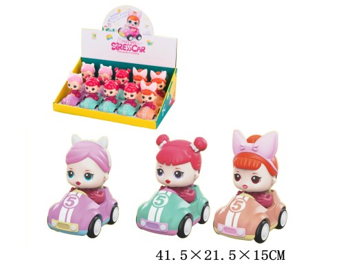 lalka w aucie, wystarczy nacisnąć na głowe lalki i samochód pojedzie