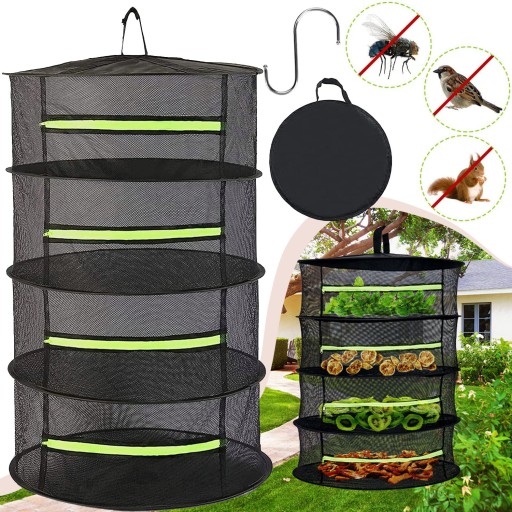 🌿🌿🌿 Duża pojemność: siatka do suszenia ma 4 warstwy o rozłożonej średnicy 60 cm i wysokości 19 cm na warstwę dla całkowitej wysokości 80 cm. Na każdej warstwie jest wystarczająco dużo miejsca, aby wysuszyć wiele roślin i ziół. Każda warstwa posiada niezależny zamek błyskawiczny, który można sortować i wysuszyć, aby uniknąć mieszania.