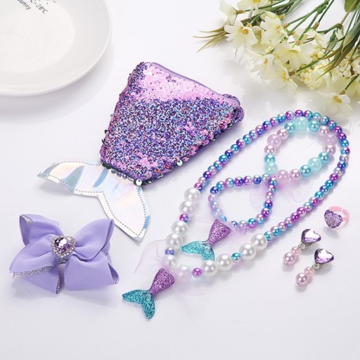 NASZYJNIK KOLCZYKI BRANSOLETKA SPINKA TOREBKA PIERŚCIONEK ARIELKA MAŁA SYRENKA ZESTAW 6 CZĘŚCI