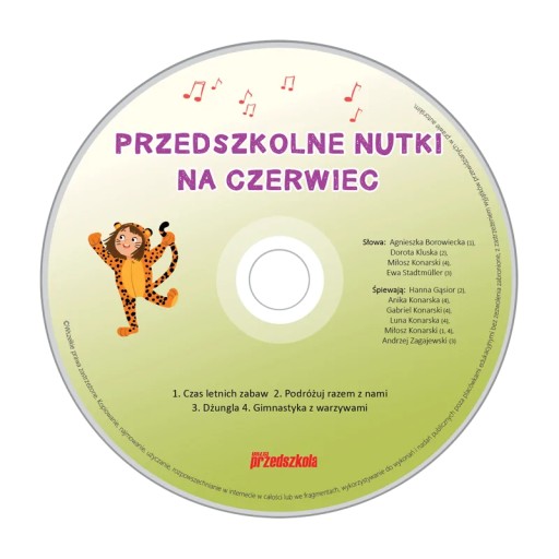 - płytę CD „Przedszkolne nutki na czerwiec” z podkładami i piosenkami w wersji wokalnej i instrumentalnej skorelowanymi z treścią miesięcznika;