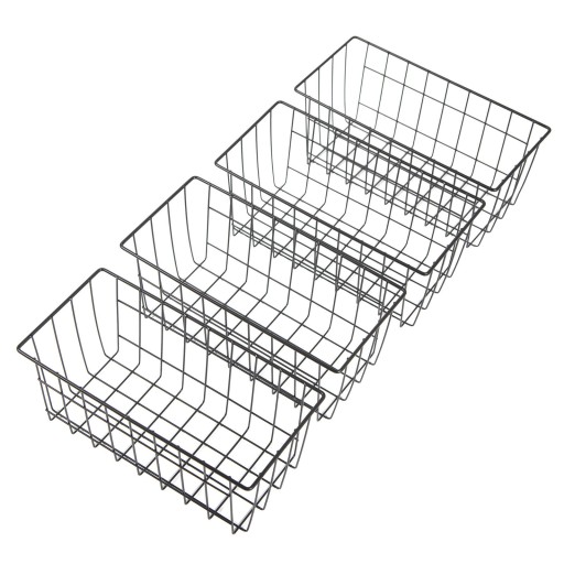 Zawartość opakowania - 4 x wiszący kosz druciany, 8 x haczyki samoprzylepne. druciany kosz do przechowywania maksymalizuje pojemność elastycznego przechowywania w szafkach, szafach, blatach i półkach wszystkich rozmiarów, zapewniając schludną i zorganizowaną przestrzeń do przechowywania oraz łatwy dostęp do przedmiotów ze spiżarni i magazynu artykułów gospodarstwa domowego.