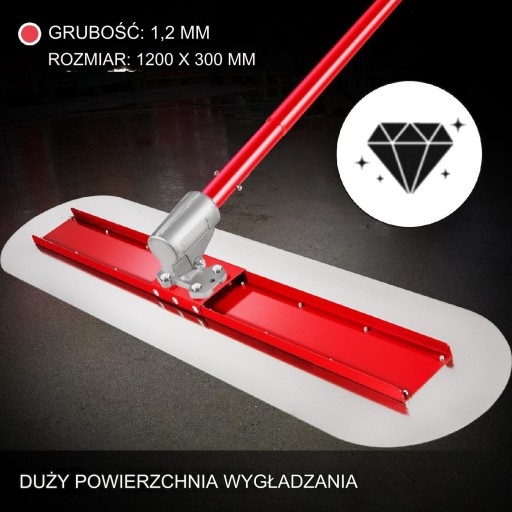 Listwa o dużej powierzchni wygładzającej (około 1200 x 300 mm) poprawia efektywność pracy, zmniejszając zmęczenie i oszczędzając czas podczas wyrównywania świeżo wylanego betonu.