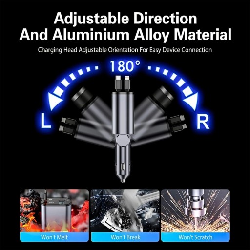 【4-in-1 Retractable Phone Car Charger】:The compact size of our 4 in 1 Retractable Car Charger ensures it takes up minimal space in your car. Charge up to four devices simultaneously and support flexiable adjusting the angle of the body.Retractable Phone Car Charger features an ingenious Tangle-Free retractable cable design that keeps your charging cables organized and ready for use. The retractable cable can be pulled out up to about 80 cm and can be automatically retracted when not in use.