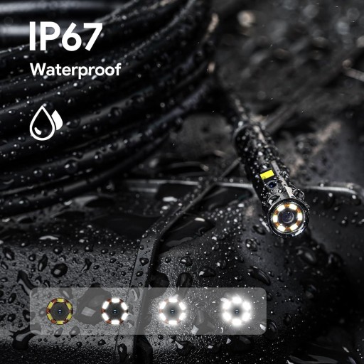 - Kamera boroskopowa zapewnia ostre i realistyczne obrazy z dużą ilością szczegółów. Elastyczny, półsztywny kabel o długości 16,5 stopy z krzywką 0,31 cala z łatwością przechodzi przez trudno dostępne miejsca. Wodoodporna konstrukcja kamery IP67 z trzema poziomami jasności zapewnia wyraźny obraz nawet w ciemnych i wilgotnych warunkach.