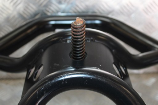 Oryginalny uchwyt mocujący koło zapasowe do klatki, element używany w stanie dobrym. Stelaż posiada drobne zarysowania. Śruba mocująca koło zapasowe jest ułamana.