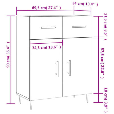 VidaXL Szafka, szarość betonu, 69,5x34x90 cm, materiał drewnopochodny