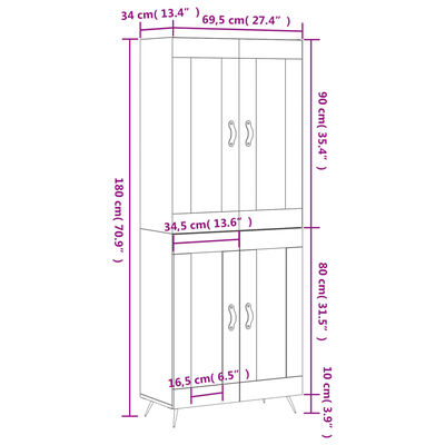 - Wymiary całkowite: 69,5 x 34 x 180 cm (szer. x gł. x wys.)