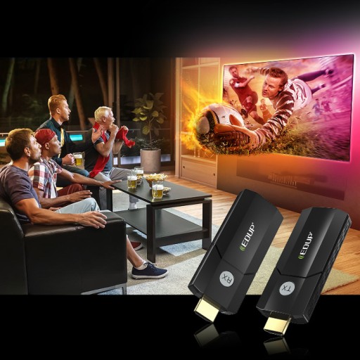 ✅ Za pomocą nadajnika i odbiornika EDUP EP-WD9908GS możesz łatwo przesyłać wideo oraz dźwięk ze źródła (np. komputera, laptopa, smartfonu, Play Station 5, Xboxa) na duży ekran lub projektor.