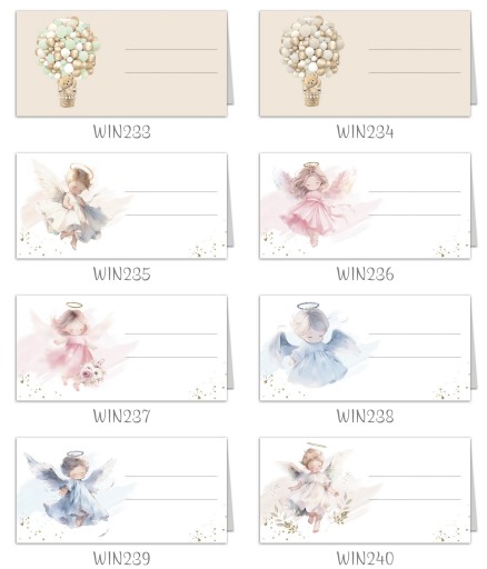 Winietki bez personalizacji gości- z miejscem do ręcznego wpisania nazwisk gości. Personalizacji podlega jedynie imię dziecka.