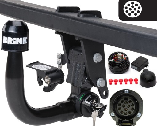 Najwyższej jakości hak holowniczy Brink z kulą wypinaną pionowo, zamykaną na kluczyk.