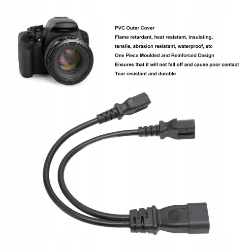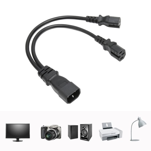 Funkcja:1. 1 IN 2 OUT: IEC320 C14 męski na podwójny C15 żeński kabel zasilający Y, konstrukcja 1 w 2 wyjścia dla bezpieczeństwa i pomaga utrzymać porządek na biurku lub w domu.