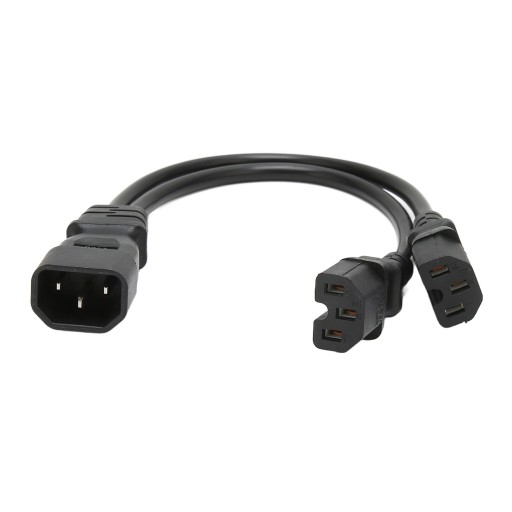 2. STANDARDOWA KONSTRUKCJA: Rozdzielacz zasilania konwertuje standard IEC320 C14 na podwójne żeńskie C15 o prądzie i napięciu znamionowym do 10 A 250 V.