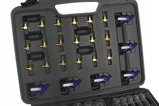 Przelewowy zestaw diagnostyczny do wtryskiwaczy COMMON RAILN a wyposażeniu miernika znajdują się końcówki do wszystkich produkowanych aktualnie systemów Common Rail t.j.: